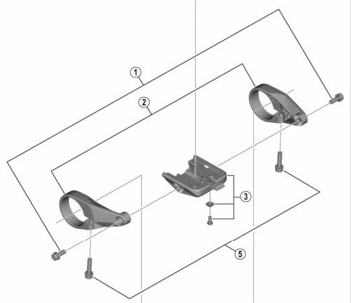 Support central pour écran Shimano SC-6100 avec colliers et vis de fixation.